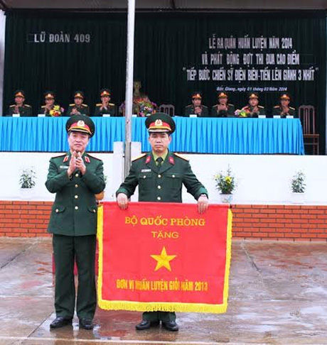 | Đón nhận cờ “Đơn vị huấn luyện giỏi năm 2013” của Bộ Quốc phòng. |