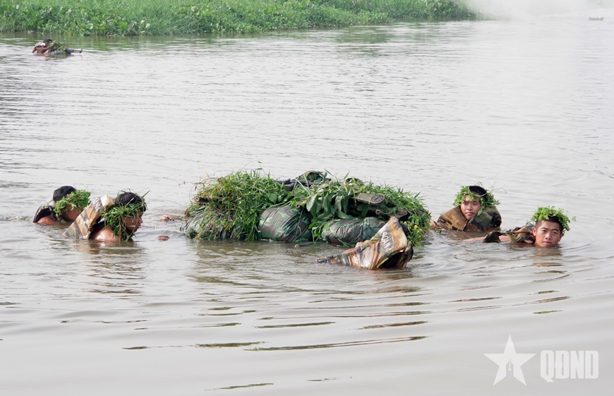 | Chiến sĩ Trung đoàn 1, Sư đoàn 9 thực hành nội dung vượt sông trong diễn tập năm 2025. |
