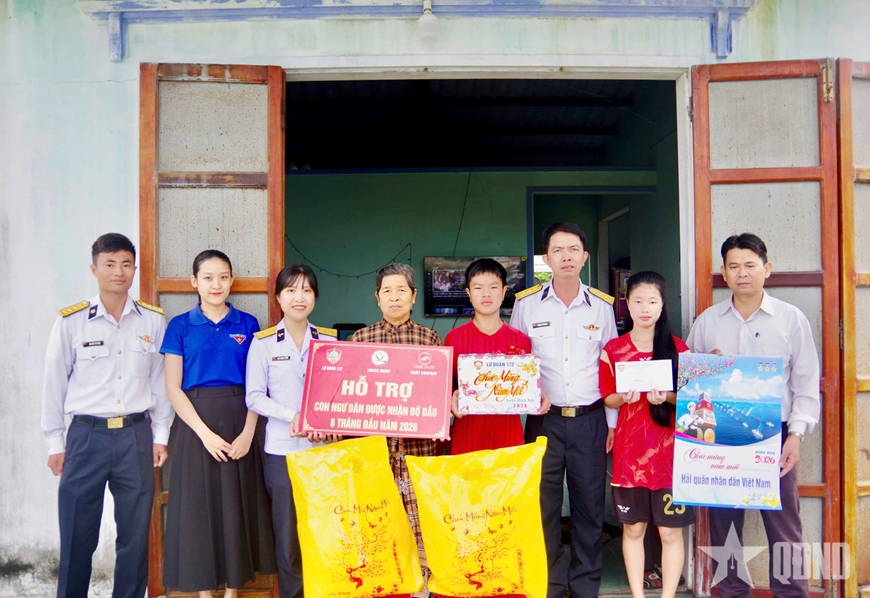 | Đại diện Lữ đoàn 172 (Vùng 3 Hải quân) trao quà tặng các học sinh được nhận đỡ đầu trên địa bàn TP Đà Nẵng đợt 1 năm 2026. |