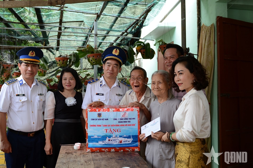 | Lãnh đạo Cảnh sát biển Việt Nam phối hợp cùng các đơn vị đồng hành trao quà tặng ngư dân tại đảo Lý Sơn (tháng 9-2024). |