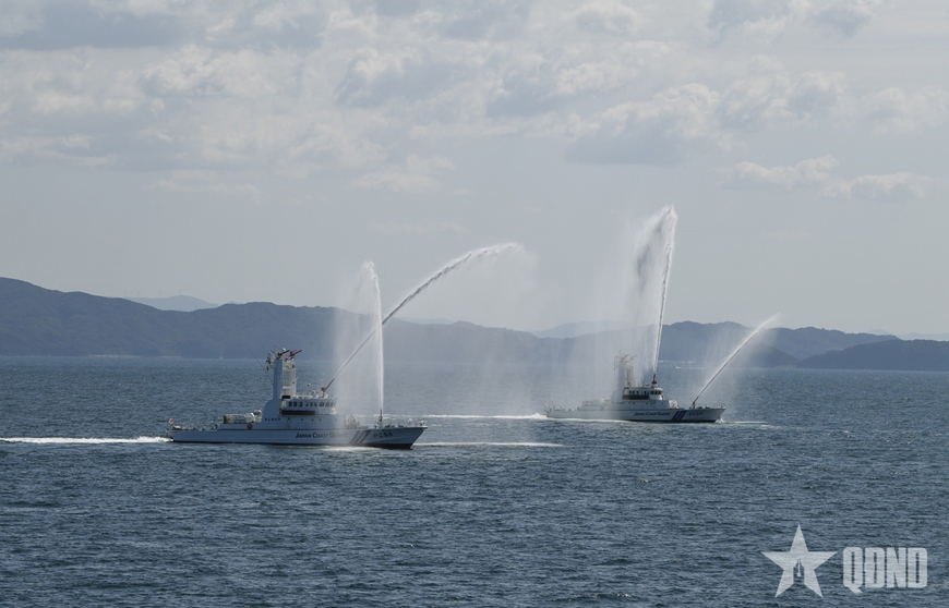 | Tàu của Lực lượng Bảo vệ bờ biển Nhật Bản luyện tập cứu hộ, cứu nạn cùng tàu của Cảnh sát biển Việt Nam, tháng 11-2023. |