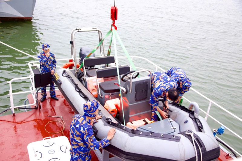 | Lữ đoàn 654 (Cục Hậu cần-Kỹ thuật Quân khu 4) thực hiện nhiệm vụ khảo sát luồng lạch trên sông. Ảnh: LƯU CƯỜNG |