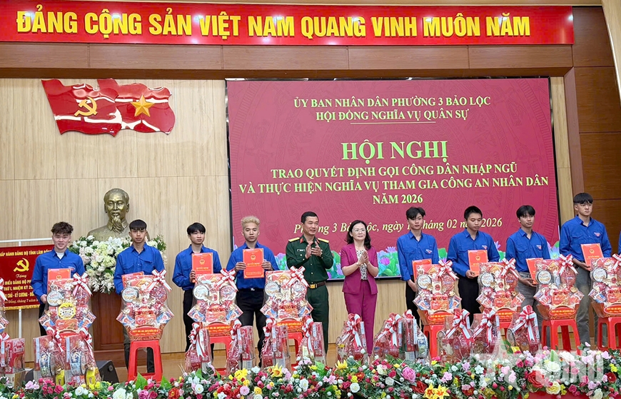 Đặc biệt, tại phường 3 Bảo Lộc, 100% công dân lên đường nhập ngũ năm 2026 đều tự nguyện viết đơn. Con số ấn tượng này là minh chứng sinh động cho hiệu quả của công tác dân vận và sự quan tâm sát sao của cấp ủy, chính quyền địa phương sau sáp nhập chính quyền địa phương hai cấp. Để ghi nhận tinh thần xung kích đó, UBND phường đã tổ chức khen thưởng các công dân ưu tú vì trách nhiệm với quê hương, đất nước.