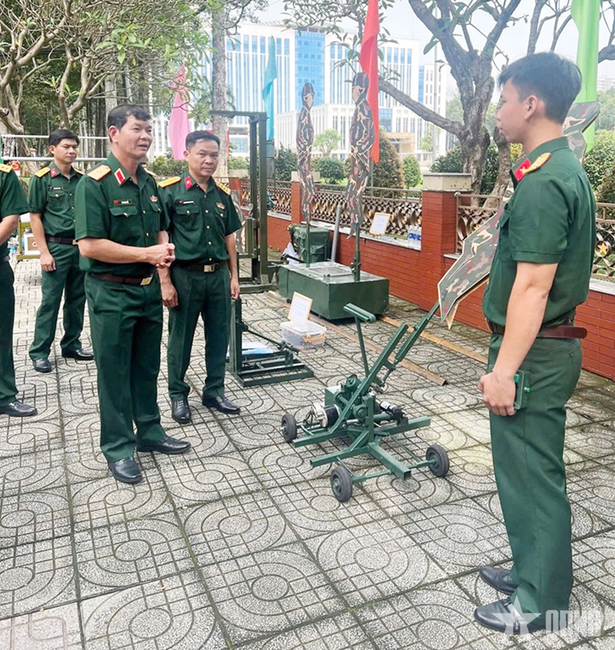 | Thiếu tướng Lê Ngọc Hải, Phó tham mưu trưởng Quân khu 7 tham quan, kiểm tra sáng kiến tại Sư đoàn 302. |