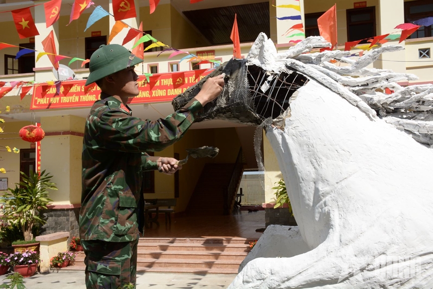 | Mỗi chi đoàn, đại đội đều chế tác 1-2 linh vật ngựa để vui xuân. |