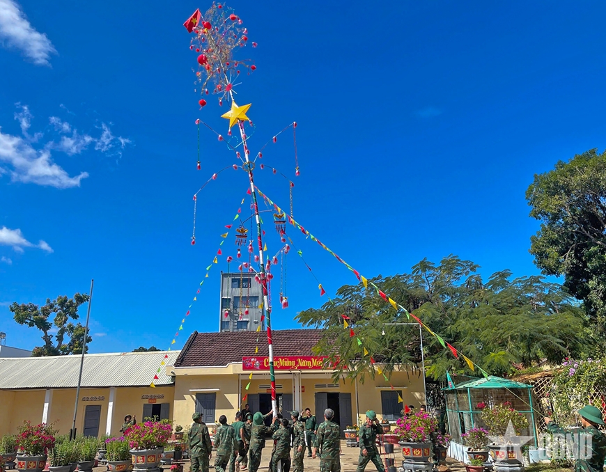Đặc biệt, với đặc thù chiến sĩ người dân tộc thiểu số chiếm đa số, Tiểu đoàn 17 và các đơn vị đều dựng cây nêu, tạo cảm giác cho chiến sĩ như đang sống ở làng.