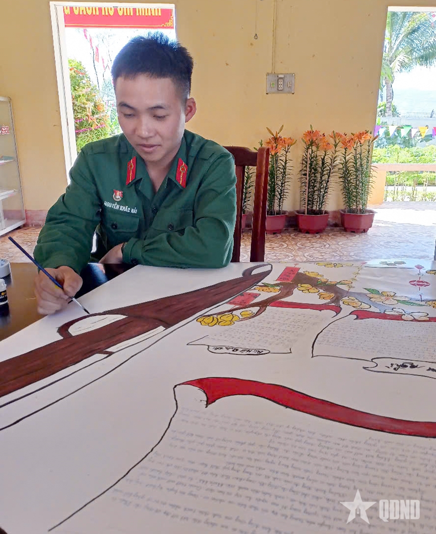 | Chiến sĩ Trung đoàn 24, Sư đoàn 10 làm báo tường đón Tết. |