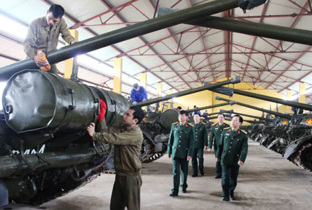 Kiểm tra bảo quản, bảo dưỡng xe tăng ở lữ đoàn 406.