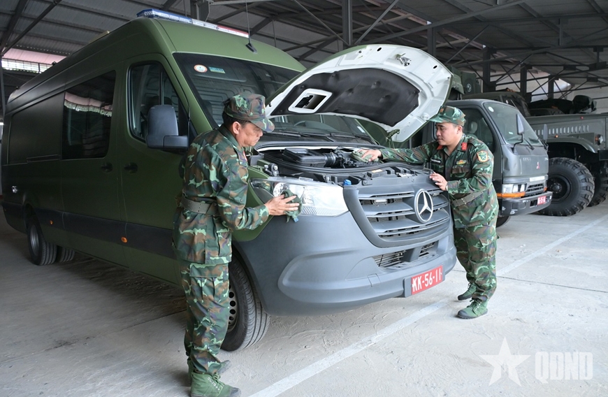 | Nhân viên Đội Phòng, chống khủng bố thực hiện ngày kỹ thuật cho xe chuyên dụng. |
