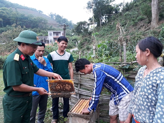 Bộ đội Đoàn Kinh tế-Quốc phòng 345 hướng dẫn người dân huyện Bát Xát (Lào Cai) phát triển nghề nuôi ong.