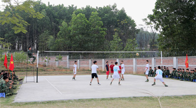 | Thi đấu bóng chuyền có khen thưởng để khuyến khích bộ đội. |