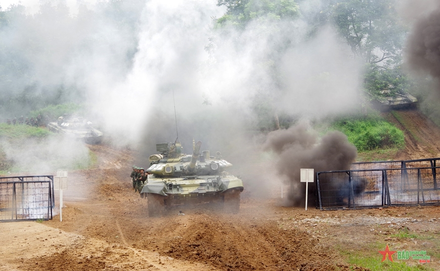 | Trung đội 1, Đại đội 4, Tiểu đoàn 2 (Lữ đoàn 201, Binh chủng Tăng thiết giáp) huấn luyện chiến thuật trung đội tăng mở cửa đánh chiếm đầu cầu. Ảnh: VŨ NGHIÊM |