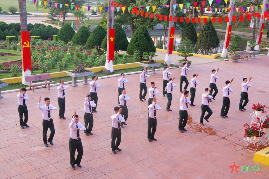 Cán bộ, đoàn viên Trung đoàn 2 (Đoàn An Lão) nhảy vũ điệu mừng Xuân mới.