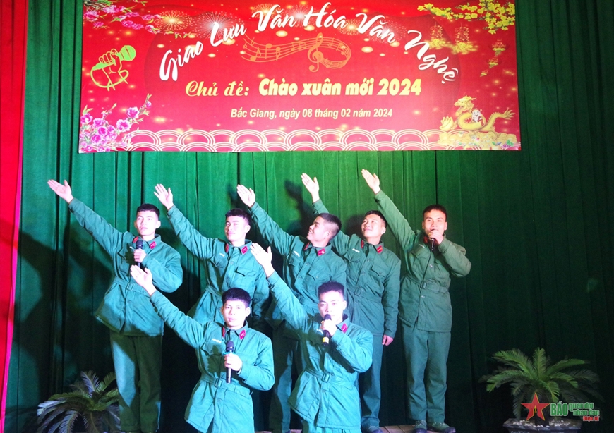 | Một tiết mục văn nghệ giao lưu trong chương trình "Chào xuân mới 2024". |