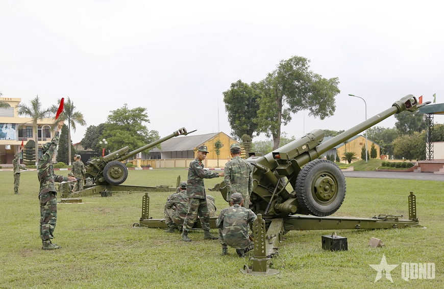 Các khẩu đội pháo thuộc Trung đội 1, Đại đội 4, Tiểu đoàn 2, Lữ đoàn Pháo binh 382 (Quân khu 1) luyện tập chấp hành khẩu lệnh bắn mục tiêu ngoài kế hoạch.