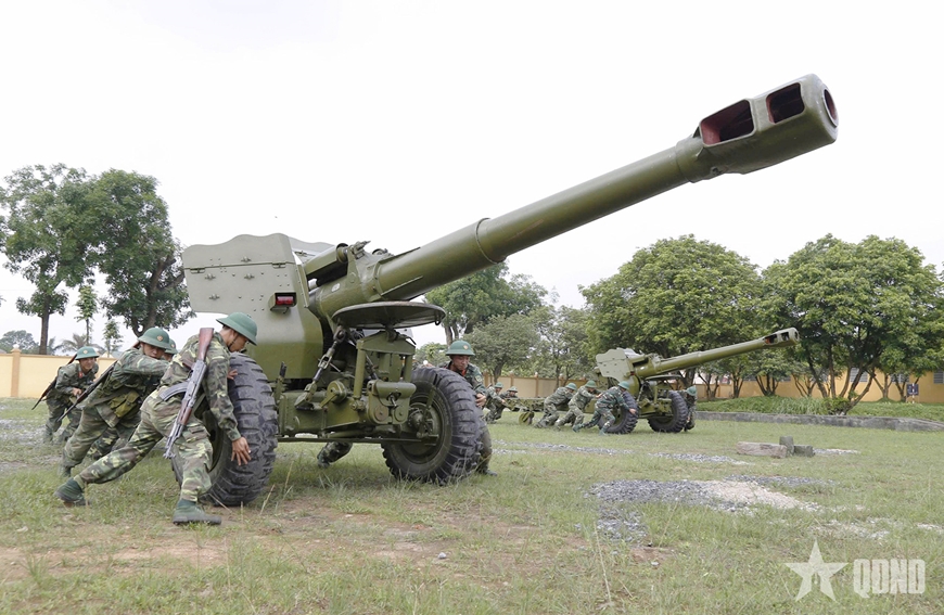 Những khẩu pháo nặng hàng tấn được các pháo thủ nhanh chóng cơ động vào vị trí. Động tác thiết bị pháo, lắp đặt khí tài được thực hiện thuần thục, chính xác đến từng chi tiết. Dưới cái nắng thao trường, trên gương mặt kiên nghị, rắn rỏi của các pháo thủ lấp lánh những giọt mồ hôi, ánh mắt họ ánh lên sự tập trung cao độ.