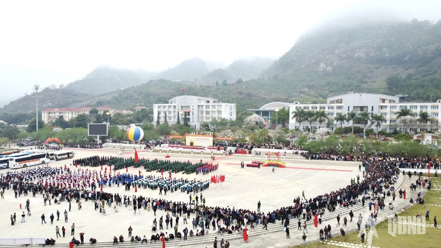 | Quang cảnh Lễ giao nhận quân tại Quảng trường 8-5, phường Mộc Châu. |