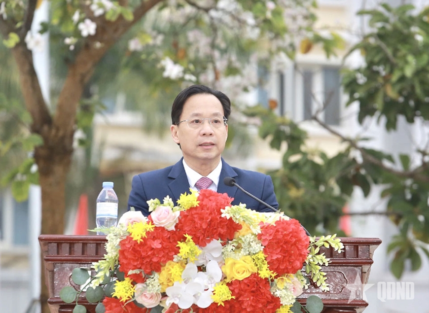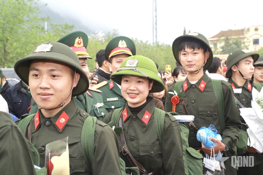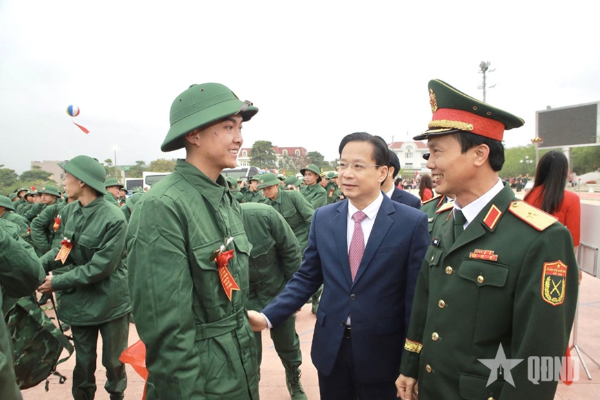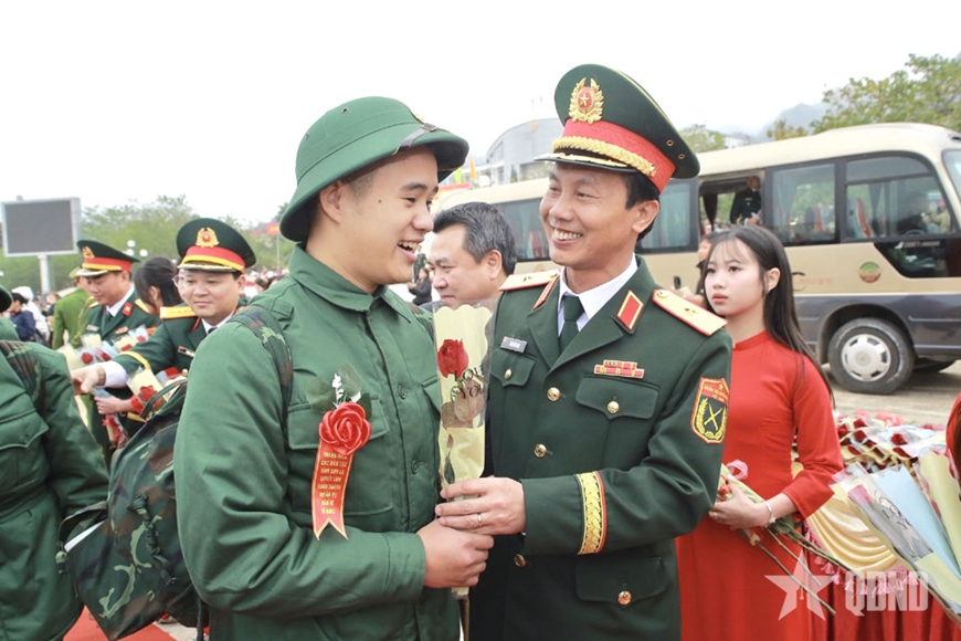 Đại diện Quân khu 2 và địa phương động viên thanh niên lên đường thực hiện nghĩa vụ quân sự.