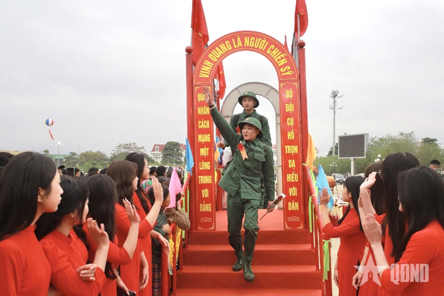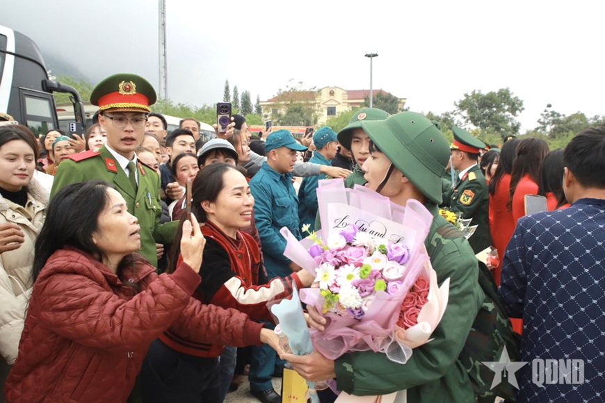 | Người thân tiễn thanh niên thực hiện nghĩa vụ quân sự. |
