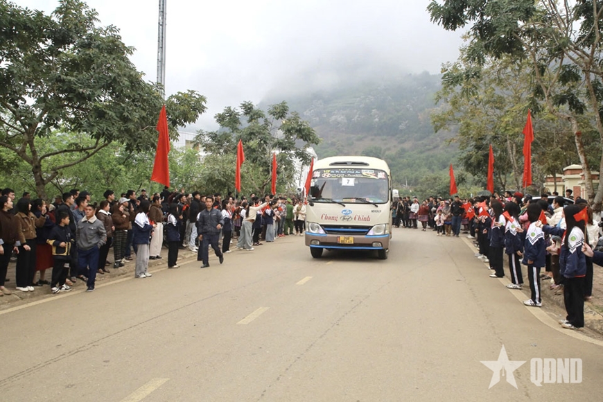 Tại điểm giao nhận quân số 1 của Ban chỉ huy Phòng thủ khu vực 4 - Mộc Châu, có các công dân ưu tú là con em các dân tộc thuộc 12 xã, phường lên đường thực hiện nghĩa vụ quân sự và nghĩa vụ tham gia Công an nhân dân.