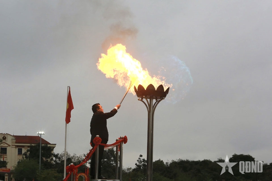 | Đại diện lãnh đạo phường thắp lửa truyền thống. |
