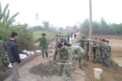 | Cán bộ, chiến sĩ Sư đoàn 3 tích cực hưởng ứng phong trào Quân đội chung sức xây dựng nông thôn mới. |