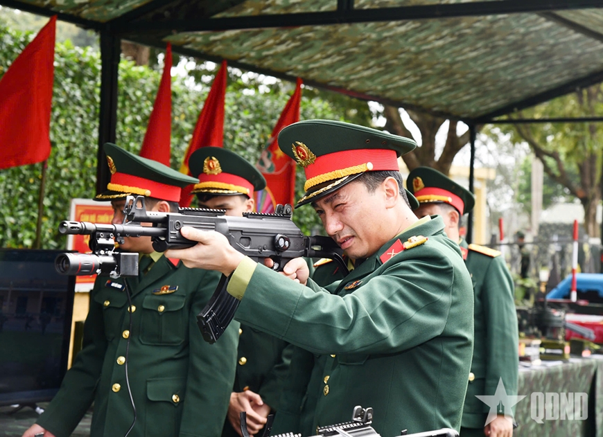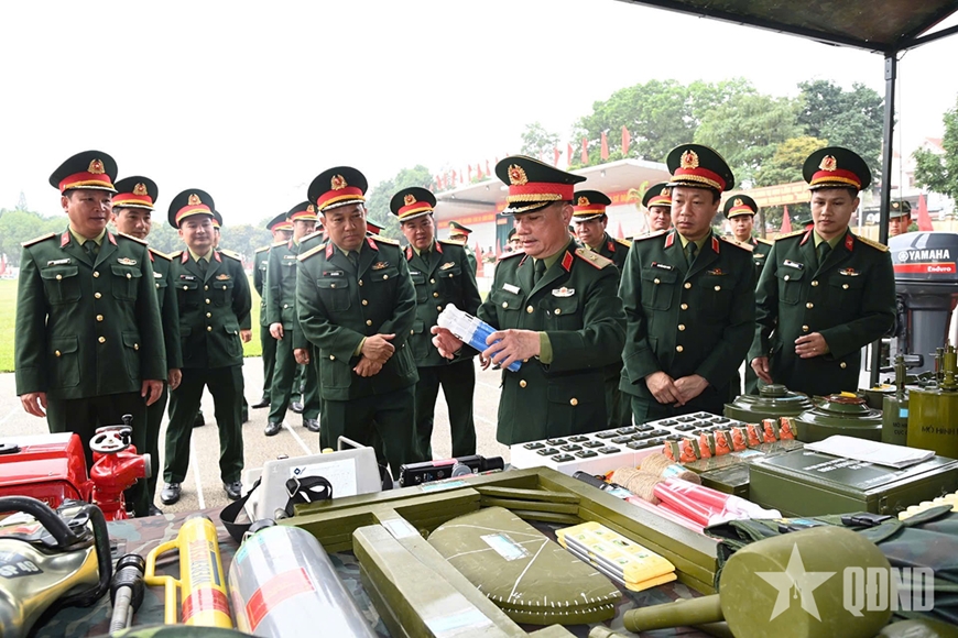 | Thủ trưởng Bộ tư lệnh Quân khu 2 tham quan mô hình, sáng kiến tại Lễ ra quân huấn luyện của Sư đoàn 316. Ảnh: HOÀNG TRUNG |