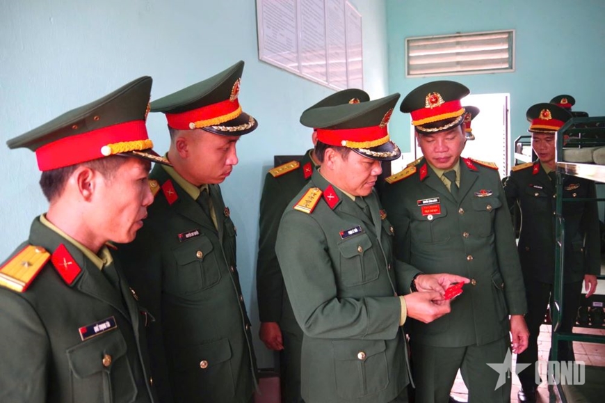 | Lãnh đạo, chỉ huy Sư đoàn kiểm tra vật chất quân tư trang cá nhân chiến sĩ mới năm 2026 tại Trung đoàn 3. |