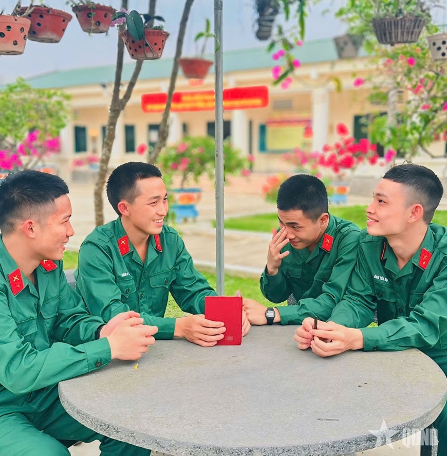 | Chiến sĩ mới Tiểu đoàn 5, Trung đoàn 335 tham gia sinh nhật đồng đội đầu tiên trong quân ngũ. |
