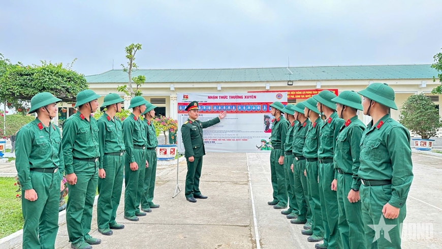 | Chiến sĩ mới Đại đội 1, Tiểu đoàn 1, Trung đoàn 1 tích cực nghiên cứu nhận thức thường trực tại đơn vị. |