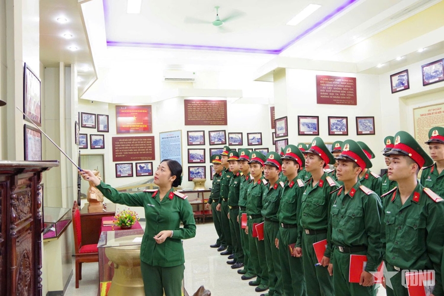 | Chiến sĩ mới Trung đoàn 3 tham quan Nhà truyền thống Sư đoàn. |