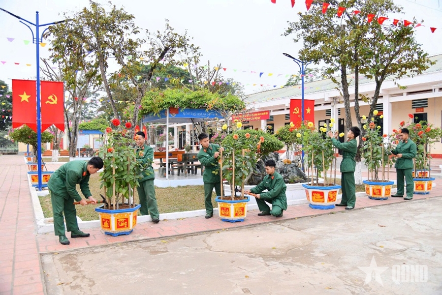 | Chiến sĩ Tiểu đoàn 8, Trung đoàn 3, Sư đoàn 324 củng cố cảnh quan môi trường đơn vị chuẩn bị đón Tết Bính Ngọ. |
