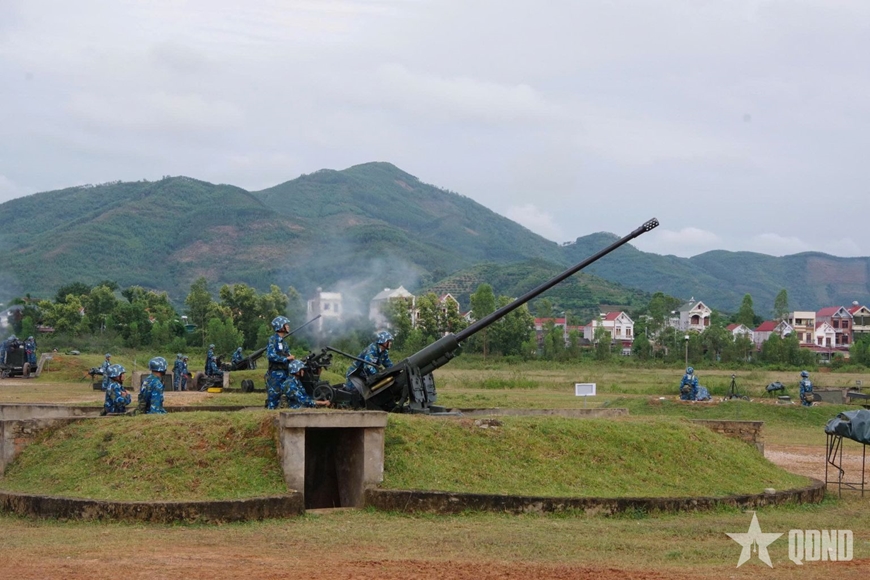 | Kíp chiến đấu Đại đội 5, Trung đoàn 228 tham gia diễn tập chiến thuật vòng tổng hợp phân đội bắt mục tiêu, bắn đạn hơi (đạn nước) Pháo phòng không năm 2025. |