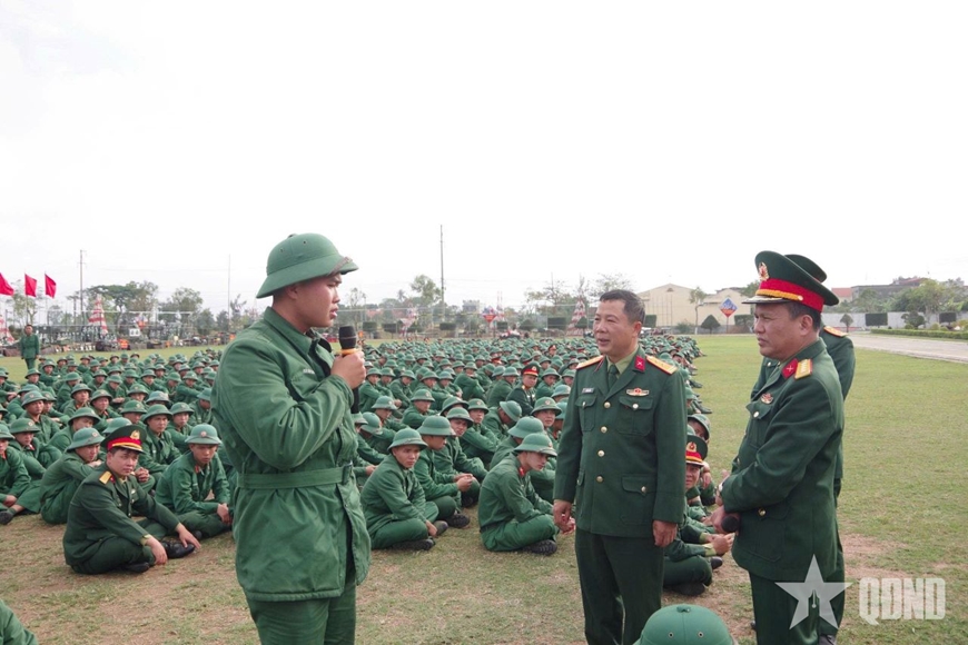 Đại tá Trần Quang Thanh, Phó cục trưởng Cục Chính sách - Xã hội, Tổng cục Chính trị và chỉ huy Sư đoàn 395 động viên hạ sĩ quan, binh sĩ chuẩn bị xuất ngũ năm 2026.