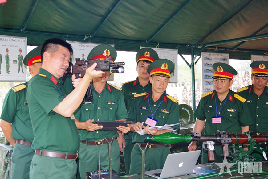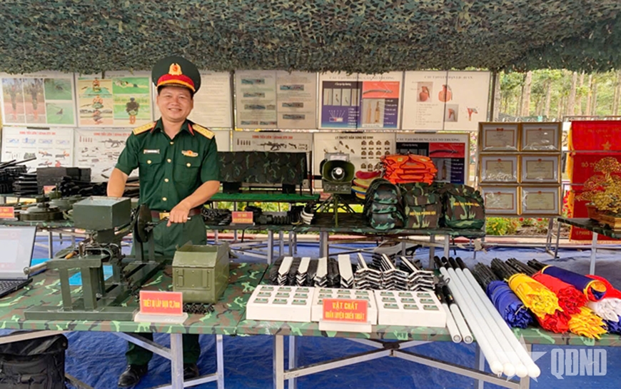 | Cán bộ phân đội Trung đoàn 5, Sư đoàn 5 giới thiệu mô hình học cụ huấn luyện chiến sĩ mới năm 2026. |