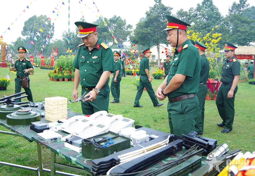 | Cán bộ Trung đoàn 5, Sư đoàn 5 kiểm tra mô hình học cụ huấn luyện tại các đại đội. |