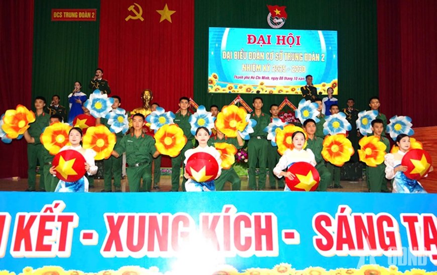 Tiết mục văn nghệ do cán bộ, chiến sĩ Trung đoàn 2 (Sư đoàn 9) và đoàn viên đơn vị kết nghĩa biểu diễn. |