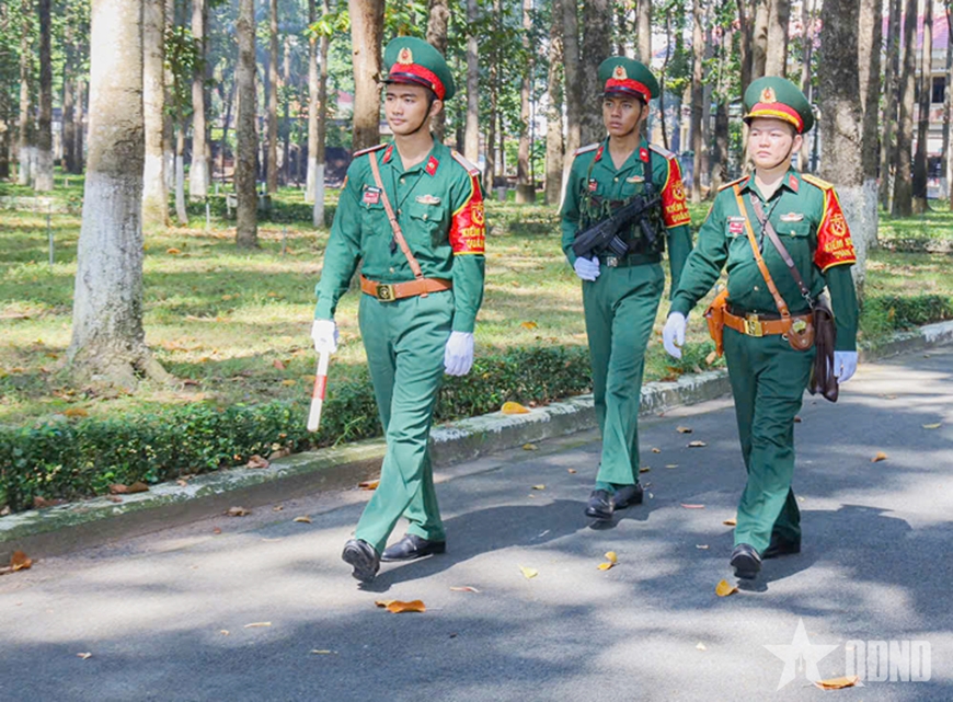 Đến Tiểu đoàn 180 (Bộ Tham mưu Quân khu 7), ngay từ sáng sớm, chúng tôi được hòa vào không khí trong doanh trại rộn ràng và đầy sinh khí. Tiếng chổi quét sân hòa cùng bước chân dập đều trong tiếng hô vang dõng dạc. Chăn được xếp vuông vức, phòng ở gọn gàng, bồn hoa cây cảnh tươi tốt.