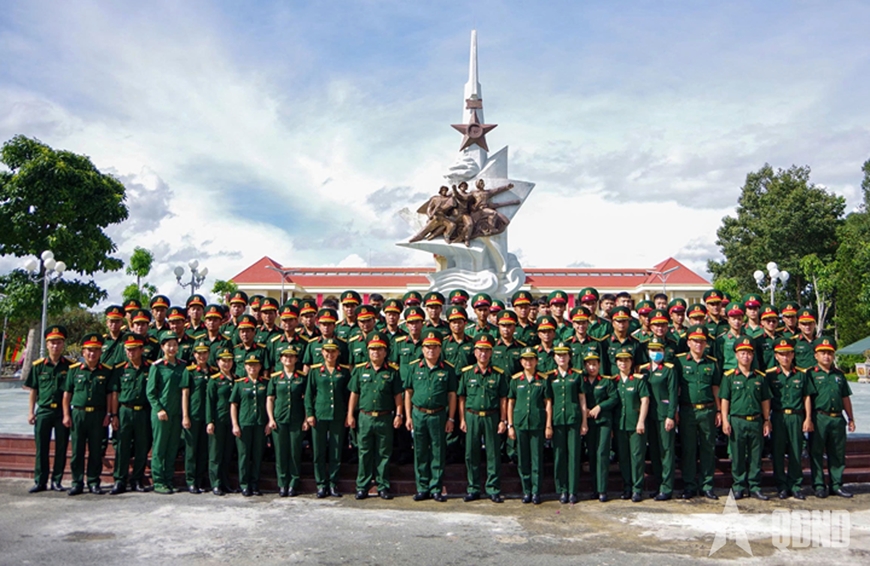 Cán bộ, chiến sĩ Bộ Tham mưu Quân khu 7 tham quan, chụp ảnh lưu niệm tại Tượng đài Chiến sĩ Sư đoàn 5 ở Sư đoàn 5, Quân khu 7. |