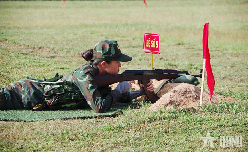 Quân nhân trẻ Bộ Tham mưu tham gia kiểm tra bắn đạn thật súng tiểu liên AK bài 1 năm 2025. |