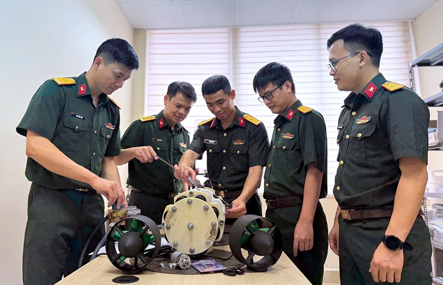 | Cán bộ Viện Thiết kế tàu quân sự kiểm tra sản phẩm nghiên cứu khoa học, tháng 5-2025. |