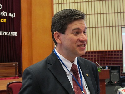| Giáo sư, Tiến sĩ khoa học V.Cô-lô-tốp chia sẻ với báo chí ngày 5-5 tại Hà Nội. Ảnh: Linh Phương |