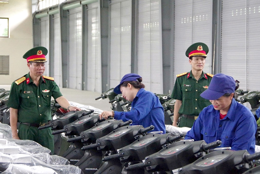 Chỉ huy Kho J112 kiểm tra công tác bảo quản xe mô tô 2 bánh trước khi bàn giao cho các đơn vị toàn quân. Ảnh: QUANG DƯƠNG |