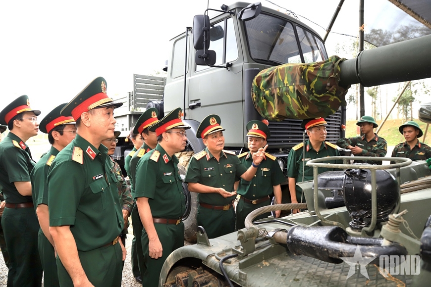 Lãnh đạo Tổng cục Hậu cần-Kỹ thuật kiểm tra công tác bảo đảm kỹ thuật cho xe-máy thực hiện nhiệm vụ A80. Ảnh: VŨ TIẾN