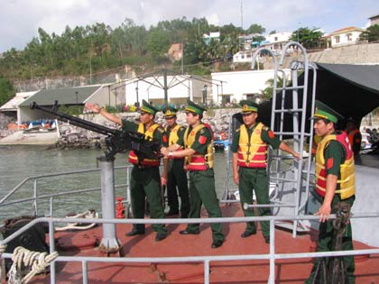 | Tàu Hải đội 2, Biên phòng Khánh Hoà chuẩn bị xuất bến. |
