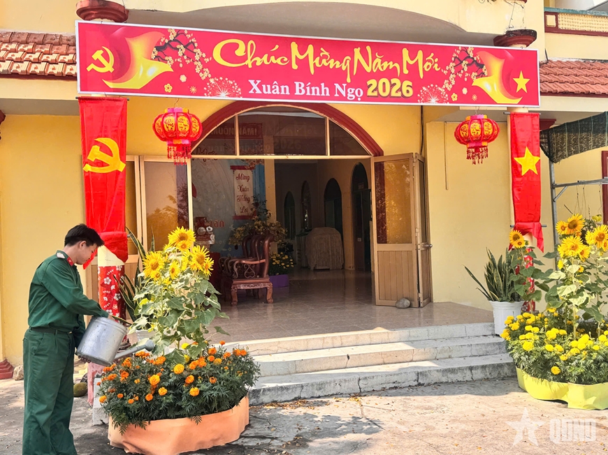 Những ngày này, doanh trại Đội K93 như khoác lên mình diện mạo mới. Khu nhà ở, nhà ăn, khu sinh hoạt chung được vệ sinh sạch sẽ. Những luống rau tăng gia xanh mướt được chăm chút cẩn thận. Trước mỗi dãy nhà, cờ Tổ quốc được treo ngay ngắn, nổi bật giữa nền trời trong xanh của vùng núi Tịnh Biên. Vài châu mai được anh em trang trí trang trọng trước hiên nhà, không nhiều nhưng đủ để báo hiệu mùa xuân đã về. Khoảng lặng trước thềm năm mới không khiến cán bộ, chiến sĩ quên đi nhiệm vụ. Ngược lại, đó là lúc mỗi người có thêm thời gian nhìn lại chặng đường đã qua, nghĩ về những phần việc còn dang dở và chuẩn bị tâm thế cho hành trình phía trước.