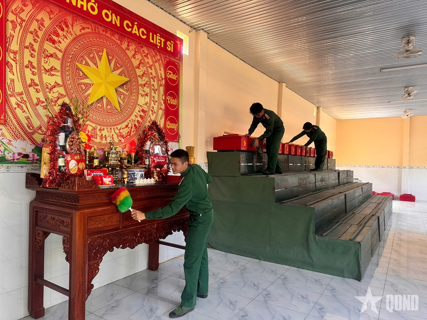 Nhà để hài cốt liệt sĩ được các chiến sĩ Đội K93 lau dọn sạch sẽ để đón Tết.