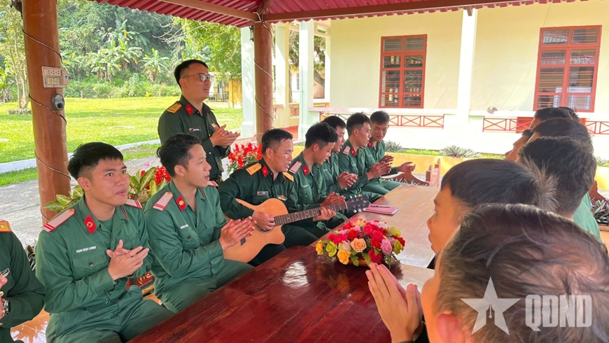Đang cùng đồng đội hát vang những ca khúc về lính, Trung sĩ Trịnh Ngọc Cương, Đại đội 1 vui vẻ nói: “Ngoài những buổi giao lưu văn hóa văn nghệ với lời ca, tiếng hát rộn ràng, đơn vị còn tổ chức nhiều hoạt động vui chơi như kéo co, thi đấu bóng chuyền và các trò chơi dân gian, tạo nên không khí Tết ở đơn vị thật sôi nổi, ấm áp, giúp chúng tôi vơi đi nỗi nhớ nhà”.