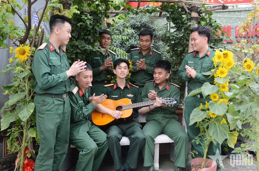 | Vui văn nghệ trong đơn vị. |