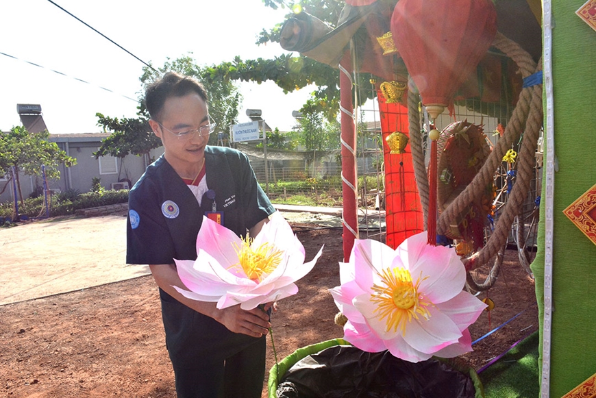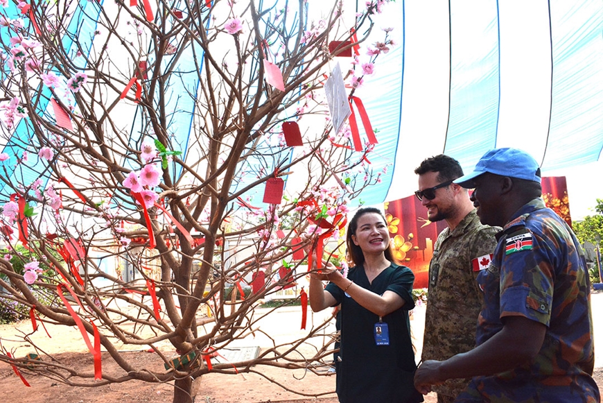 Thực hiện sứ mệnh hòa bình, lực lượng “mũ nồi xanh” Việt Nam còn là những đại sứ văn hóa. Vui xuân, đón Tết không chỉ là ngày lễ riêng của cán bộ, nhân viên BVDC 2.7 mà còn là sự kiện văn hóa đối với các đồng nghiệp quốc tế. Họ không giấu được sự háo hức khi lần đầu được trải nghiệm không khí Tết Việt. “Chúc BVDC 2.7 hoàn thành tốt sứ mệnh của các bạn tại Nam Sudan, mang lại hòa bình cho đất nước này. Chúc mừng Tết Nguyên đán, các bạn đồng nghiệp Việt Nam của tôi”, lời chúc được Thiếu tá Stephen Tuwey (Kenya) thuộc Ban Bảo đảm hậu cần của Phân khu Unity viết nắn nót trên mảnh giấy đỏ và gắn lên cây đào hồng thắm bằng lụa.